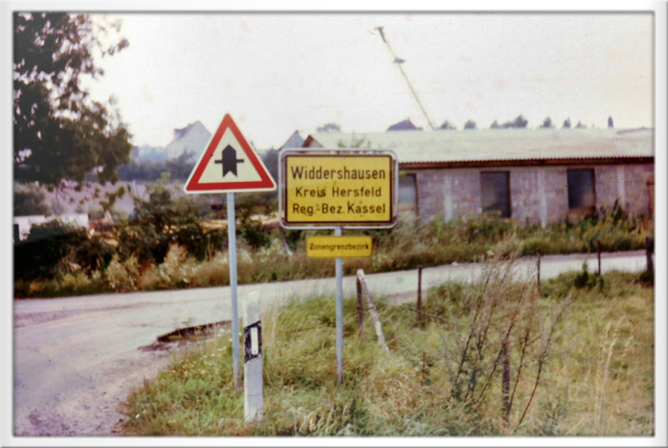 Am Ortsausgang von Widdershausen endet 1988 die Straße, man kann hier nur den Feldweg in die Marbach weiterfahren. Der Weg in die Nachbargemeinde nach Dankmarshausen ist noch durch einen bewachten Metallgitterzaun versperrt