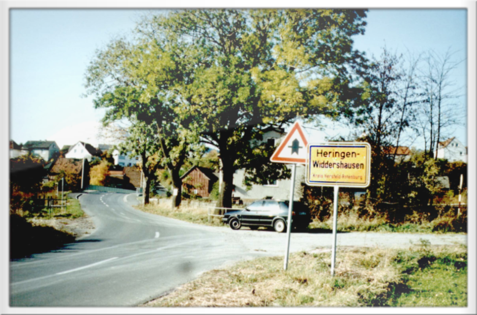 Widdershausen Ortseingang vor der Werrabrücke am Abzweig zur Kiesbaggerei 1989 nach der Eingemeindung nach Heringen