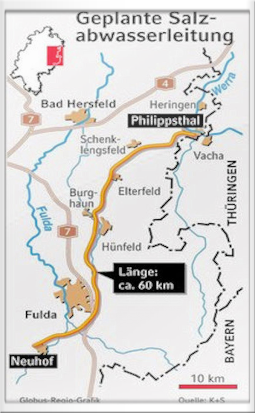 Der Leiter des Kali-Werkes in Neuhof, Dieter Friedrich, sagte, K+S habe 16 Alternativen zur Werra-Pipeline geprüft. Alle seien verworfen worden, weil sie entweder keine vollständige oder keine nachhaltige Entsorgung gewährleisten würden. Nach Unternehmensangaben wurde unter anderem das Abdecken der Halde und das Einlagern des Abraums im Bergwerk untersucht. Die Pipeline sei "die beste Lösung", so Friedrich, zudem werde das Unternehmen die Grenzwerte für die Salzbelastung in der Werra auch nach dem Bau der Leitung einhalten.