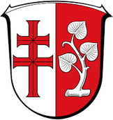 | Wappen: Auf blauem Grund steht aufrecht der je 5mal rot und weiß-gestreifte mit roter Zunge gezierte hessische Löwe | ![]() | |