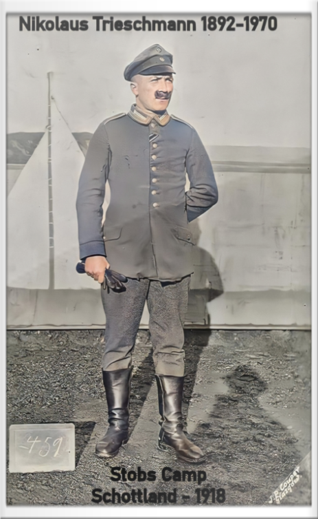 Nikolaus Trieschmann aus Widdershausen, Jahrgang 1892, verbrachte seine Gefangenschaft im Stobs Camp er war Mitglied im Landwirtschaftlichen Verein des Stobs Camps 1918, hier vom Fotografen J.P. Cooper aus Glasgow