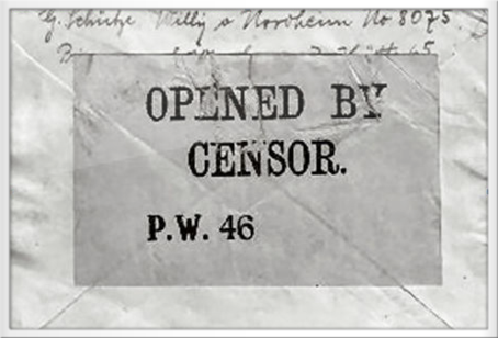POW Camp Stobs, Lagerzensur 1917, ausgehende Post wurde durch den Lagerzensor geöffnet