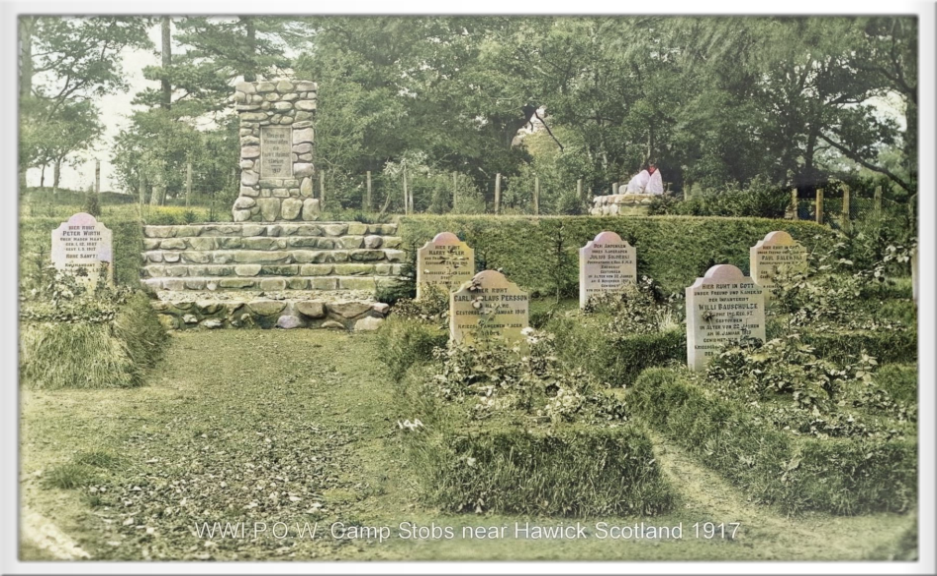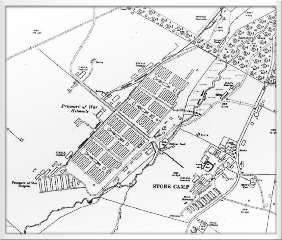 Das zentrale schottische Internierungslager Stobs bei Hawick in Südschottland wurde im November 1914 eingerichtet und sollte mit einer geplanten Kapazität von 12.000 eines der größten Großbritanniens werden. Letztlich wurden jedoch nur maximal 4.500 untergebracht. Die gesamte Anlage war von Stacheldrahtzaun umgeben und nachts beleuchtet. Die 2.377 Internierten im Juni 1915 setzten sich zusammen aus 1.098 Zivilisten, 783 Soldaten und 496 Matrosen.
