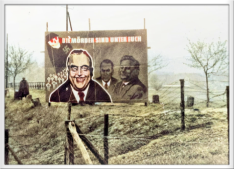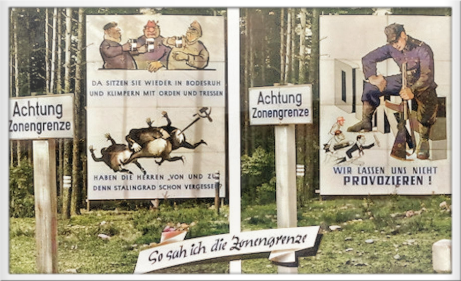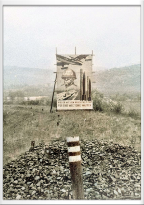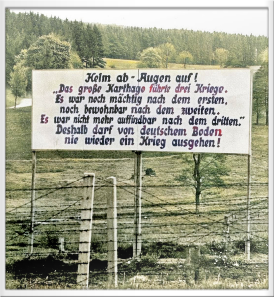 Sollte man Deutschland mit Karthago vergleichen? Das Schild wandte sich natürlich gen Westen, die DDR brauchte solche Belehrungen ja nicht. (Propagandatafel der DDR bei Mödlareuth 1968)