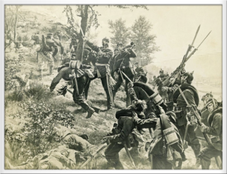 Carl Röchlings (1855-1920) Zeichnung von 1890 zeigt die Erstürmung des Roten Berges (Spicherer Berg) am 6. August 1870.