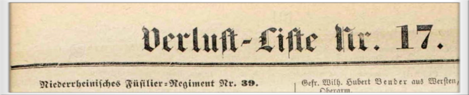 Titelzeile der Verlustliste Nr. 17 aus dem Deutsch-Französischen Krieg 1870 mit dem Füsilier Regiment 39