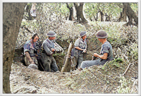 Ein englischer Mörserzug (3-inch mortar) der 78th Division der 8. Armee wartet auf den Einsatzbefehl Termoli 1943