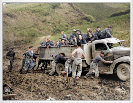 Starker regen erschwert die Umgehung einer zerstörten Brücke bei Guglionesi südwestlich von Termoli 13. Januar 1944