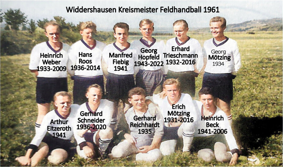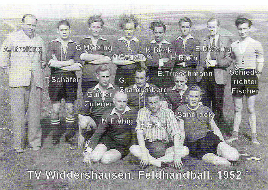 | Historie Im Frühjahr 1952 trafen sich einige junge Männer in der Gaststätte Führer mit dem Ziel, in Widdershausen einen neuen Sportgeist zu beschwören und gemeinsam den Handballsport, damals ausschließlich Feldhandball, der schon in früheren Jahren in Widdershausen Erfolge feiern konnte, wieder aufleben zu lassen. | ||