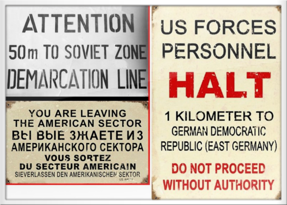 Warntafeln für amerikanisches Militärpersonal in Grenznähe