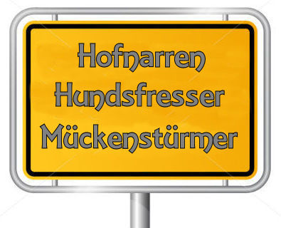 | Ortsnecknamen sind keine Eigenerfindungen, sondern wurden einem grundsätzlich vom neidischen, bösen Nachbarn "angehängt". Sie wurden früher benutzt, um die Bewohner zu charakterisieren und vor allem die jungen Männer zu verspotten. Am häufigsten werden bestimmte Handlungen benannt, die in der Regel „anstößig“ oder „unsinnig“ sind. Oft sind Tiere Namensgeber, handwerkliche Tätigkeiten finden sich ebenso wie menschliche Körperteile oder Krankheiten und körperliche Gebrechen. | ||