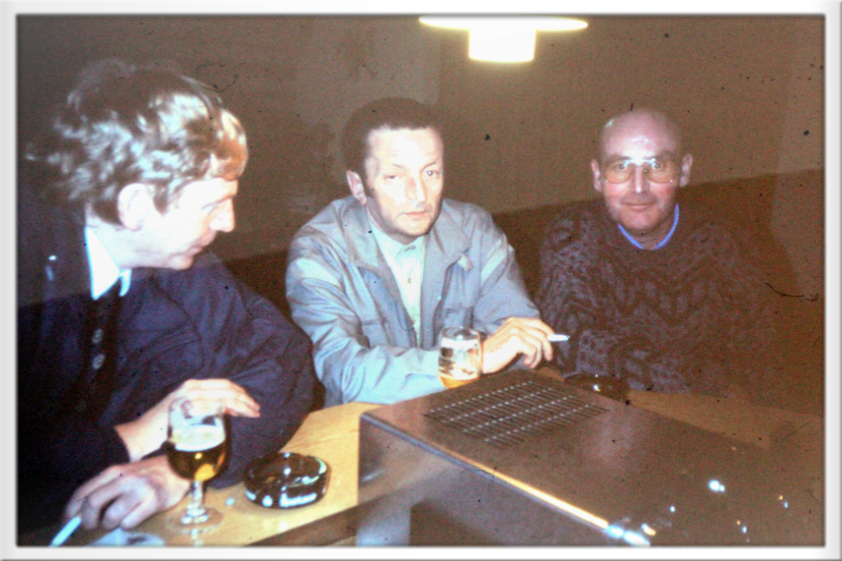 Kurt Volkenand in der Mitte, links Günter Trieschmann "Heuss" aus der Brückengasse und rechts Horst Heinz "Schafmeister Fliss" an der Theke in Widdershausen