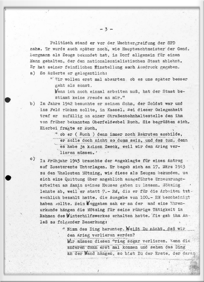 Urteil OLG Kassel gegen Georg Konrad Werner Blatt 3 (Abschrift)