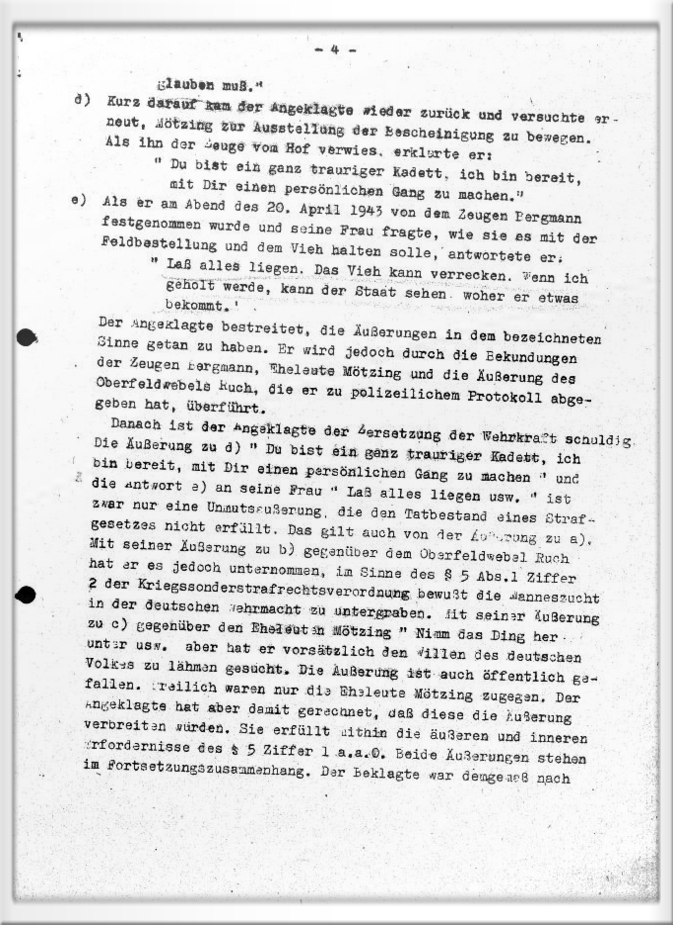 Wehrkraftzersetzung - Von der Verhängung der Todesstrafe ist deshalb abgesehen worden ....