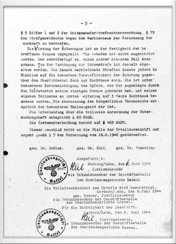Urteil OLG Kassel gegen Georg Konrad Werner Blatt 5 (Abschrift)