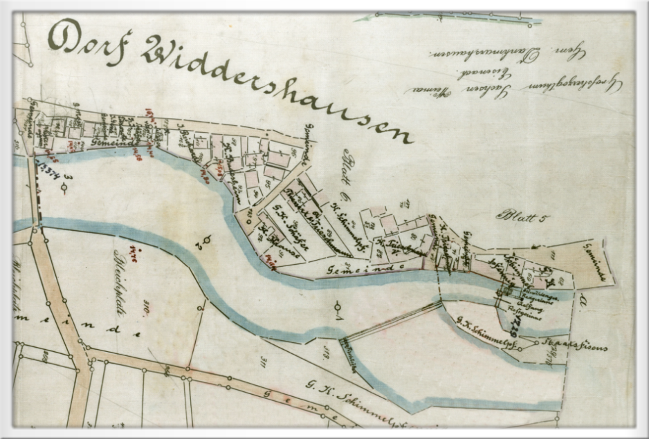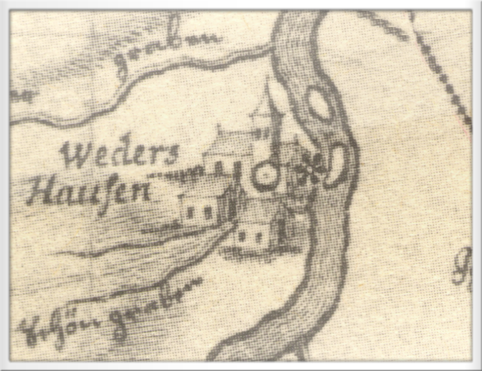 Ausschnitt aus der Generalstabskarte des Johannes Schleenstein von 1702-1705, neben der Widdershäuser Werramühle sind die beiden Werrainseln, die heute noch vorhanden sind, eingezeichnet