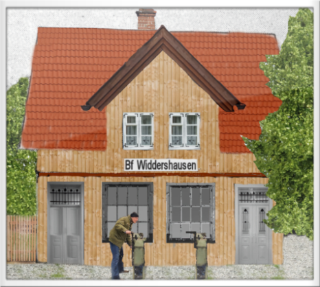 Der für den Personenverkehr stillgelegte Bahnhof Widdershausen (mit der Bezeichnung P8) Rekonstruktion nach einer Aufnahme aus dem Jahre 1974, Hersfelder Zeitung
