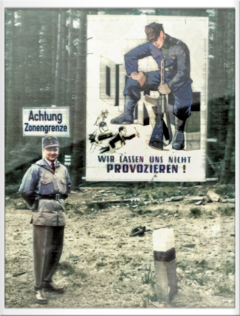 Propagandaplakat der DDR bei Bodesruh, im Vordergrund der Zollbeamte (BzbV) Kurt Ernst.