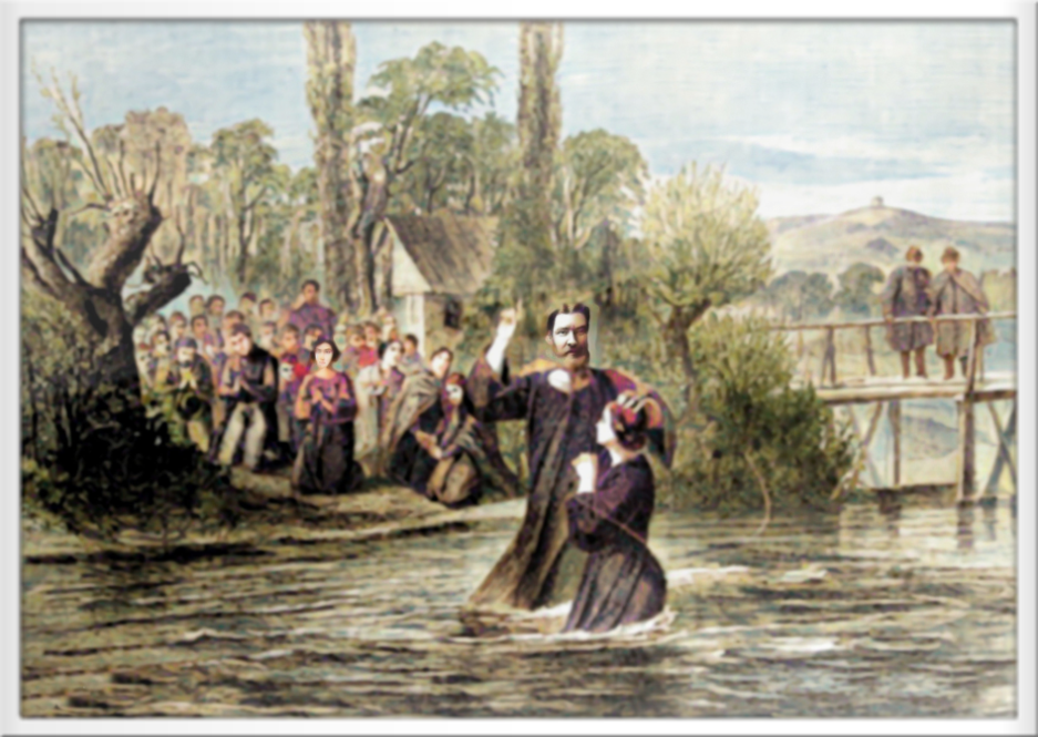 Eine Erwachsenentaufe im Fluß nach Friedrich Ortlieb, ein deutscher Porträt- und Genremaler