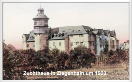 1842 wurde im Landgrafenschlosß Ziegenhain ein Zwangsarbeiterhaus eingerichtet. Man umgab das Schloß mit einer 5 Meter hohen Mauer - weitere bauliche Veränderungen waren äusserlich nicht notwendig. Das Zwangsarbeitshaus Ziegenhain galt als die größte Strafanstalt in Hessen, etwa 400 Gefangene wurden hier verwahrt. Die Zucht war in jener Zeit sehr streng. Der "Blutacker" am großen Wallgraben weist noch heute auf damalige Praktiken hin: Sträflinge mussten selbst den Pflug ziehen, um die Äcker zu bestellen. Neben der Männeranstalt befand sich von 1855 bis 1954 im Kornhaus ein Frauengefängnis.