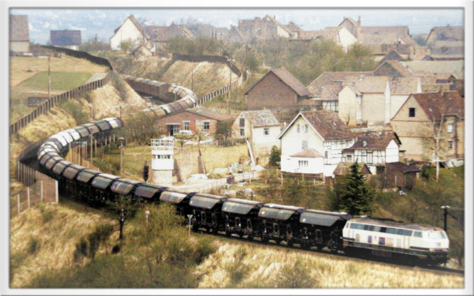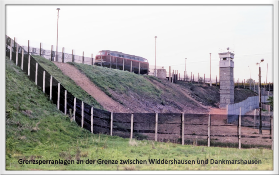 Die Grenzlinie führte dort mitten durch die Werra und auf einem ca. 8 m hohem Bahndamm führte eine Eisenbahnstraße von Widdershausen nach Dankmarshausen, d.h. von Ost nach West und umgekehrt. Für diesen Transfer der Kalizüge zahlte das Kaliwerk Wintershall sehr viele Devisen an die DDR.