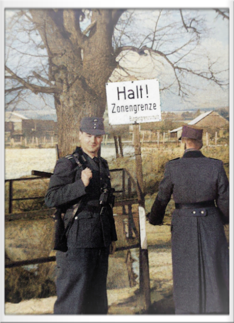 Der BGS-Beamte Herbert Böckel mit Kollegen an der Grenze in Kleinensee 1963, an dieser Stelle wurde später auch eine Mauer durch DDR-Grenztruppen gebaut